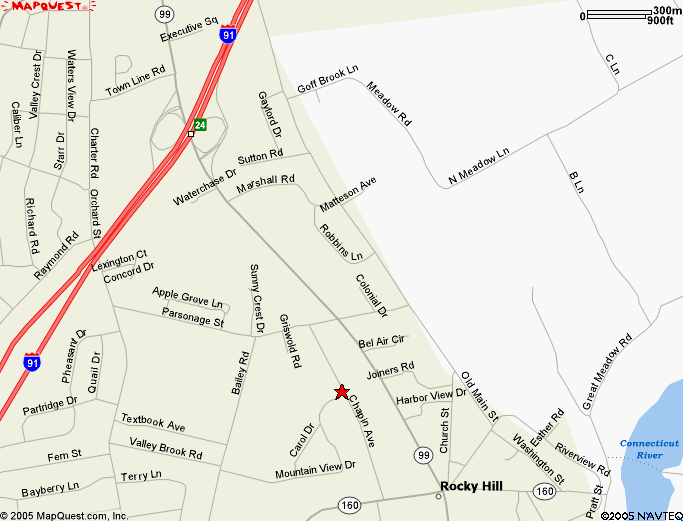 Exit 24. I-91 South turn right off exit. I-91 North turn left off exit onto state route 99 (Silas Deane Highway) to Parsonage St. light, just beyond McDonalds. Turn right onto Parsonage St. Take the first left onto Chapin Avenue.